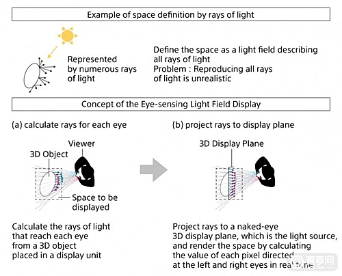 索尼表示:Eye-sensing Light Field Display(直譯為眼球追蹤光場顯示屏)是一種根據人類視覺特性而開發的顯示系統。它是一種支持眼球追蹤的光場顯示方案,可帶來逼真的裸眼3D視覺效果。